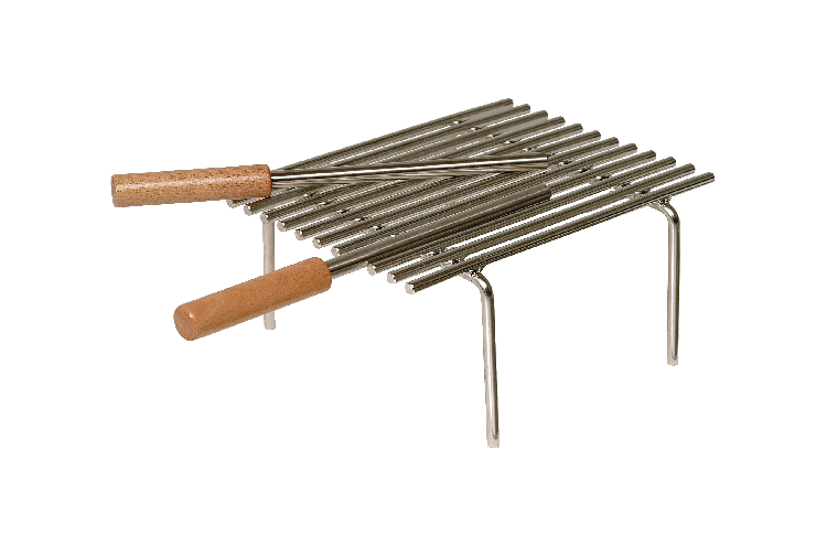 Elle est livrée avec 2 poignées amovibles en inox et bois, permettant de la déposer dans le foyer une fois le feu terminé et les braises chaudes, et de la retirer ensuite en tout sécurité.