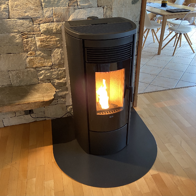 Le poêle OMEGA est un appareil de chauffage qui se montre. En standard, il est également équipé du contrôle à distance par application, télécommande et brasier auto nettoyant.