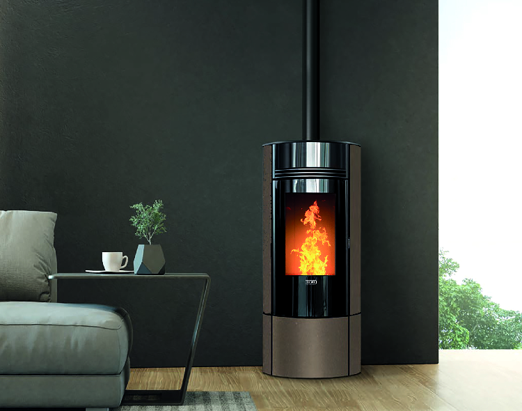 Avec sa forme résolument moderne, face avant laqué noire et sa partie inférieure aux couleurs plus douces, le poêle à pellets Klover Super 7 offre une esthétique résolument moderne. Sa porte au galbe parfait s'ouvre largement sur la flamme pour un rendu très chaleureux et une vision du feu optimale. Avec son conduit d'évacuation des fumées sur le dessus, le Super s'allume et s’éteint à distance grâce à l'application wifi, mais se règle aussi directement via sa télécommande qui fait également office de thermostat.