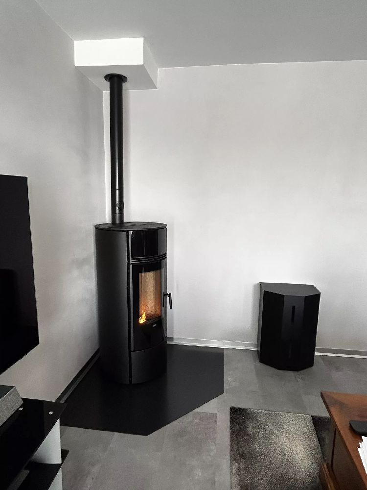 Ce poêle à pellets Klover Super 7 s'installera aussi bien en construction neuve qu'en rénovation.